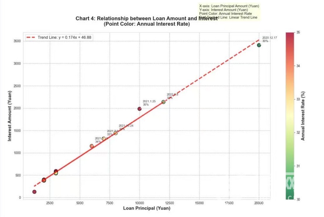 小朱是计算机相关专业的,他也渐渐从开始用钱时的病急乱投医中清醒过来。如今再回想起那段经历来,小朱有种恍然大悟的感觉。他利用专业分析软件做了一系列图表分析自己贷款的相关情况。